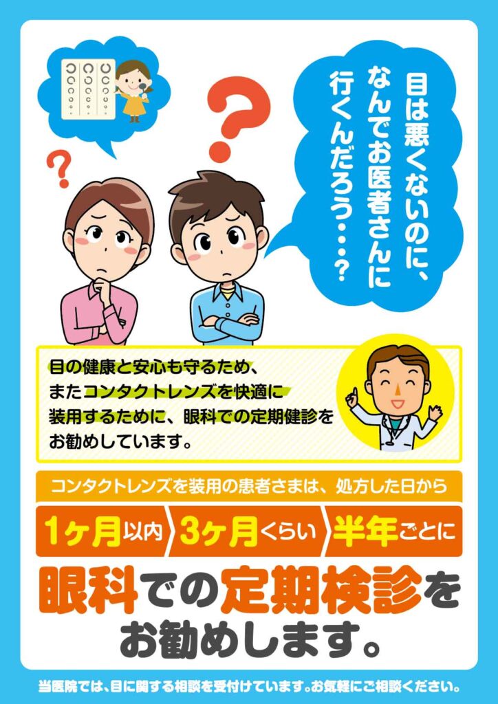 コンタクトレンズを購入したときはもちろん、目に問題がなくても定期的に眼科を受診して、目の健康状態を確認しましょう。